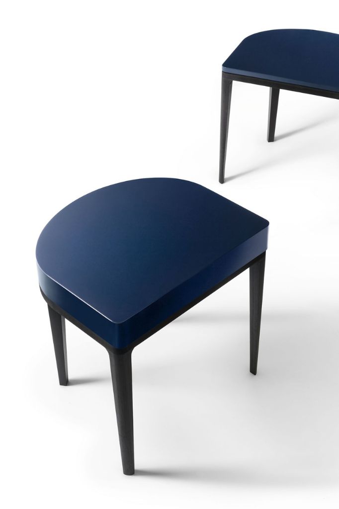Characterised by a sleek, solid-wood structure, Vic is available with a simple top resting delicately on the four legs and in another, higher version with a drawer with elegant lining in hide. In both versions, the top is available with a glossy or opaque lacquered finish, while the bedside table version offers the option of a sleek marble or stone top.
