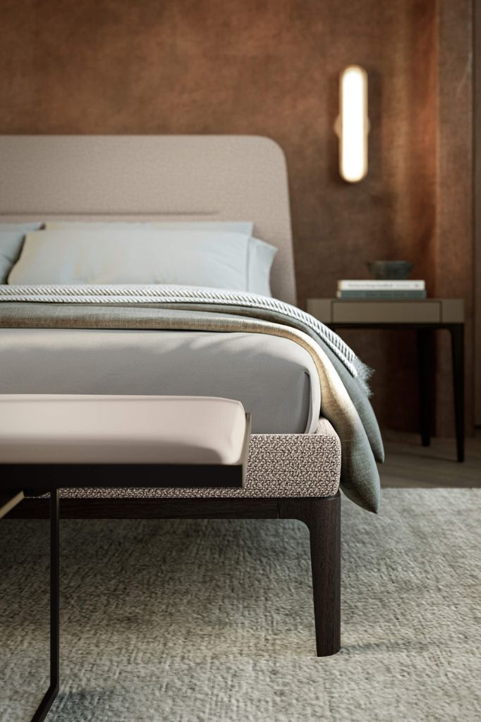 A piece with a regal presence, the Victoriano upholstered bed with solid-wood structure takes past style inspiration and combines this with a modern design.