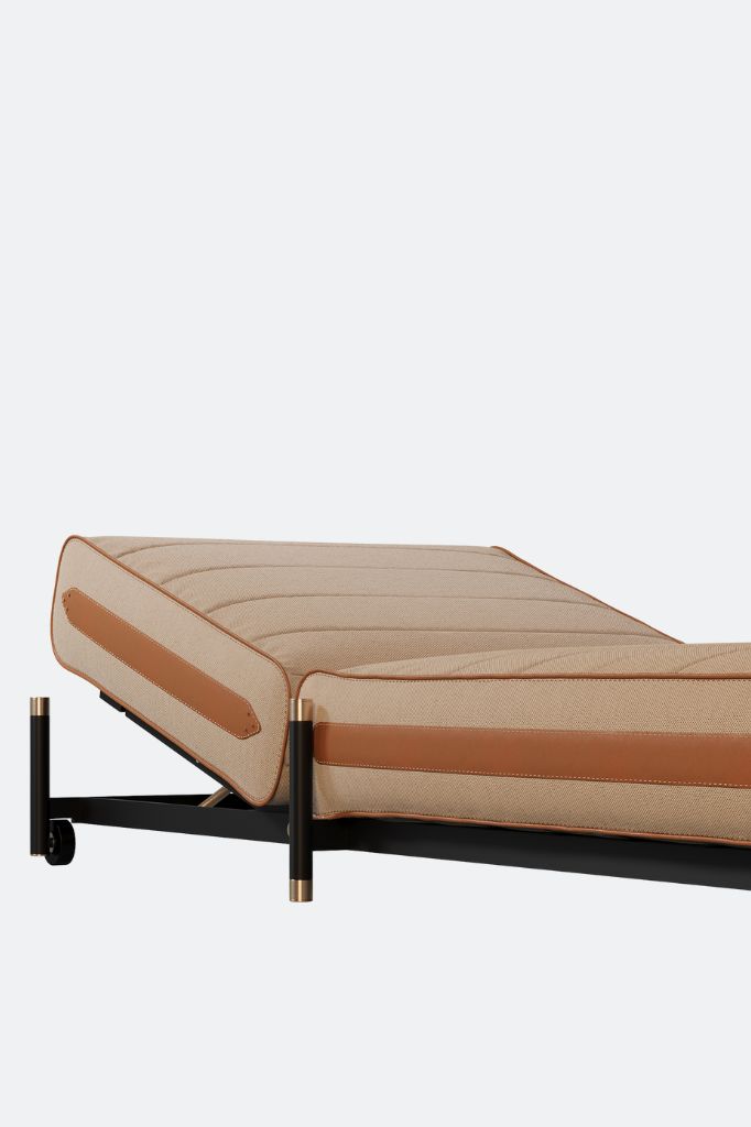 The Vogue sunbed is inspired by the finest brands and iconic pieces from the world of fashion. Combining comfort, elegance, and charm, it stands out with its refined design, featuring leather details and golden accents. Its high, undulating upholstery offers unparalleled comfort, turning every moment in the sun into an absolute pleasure.