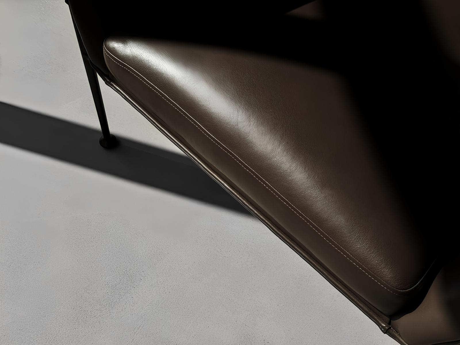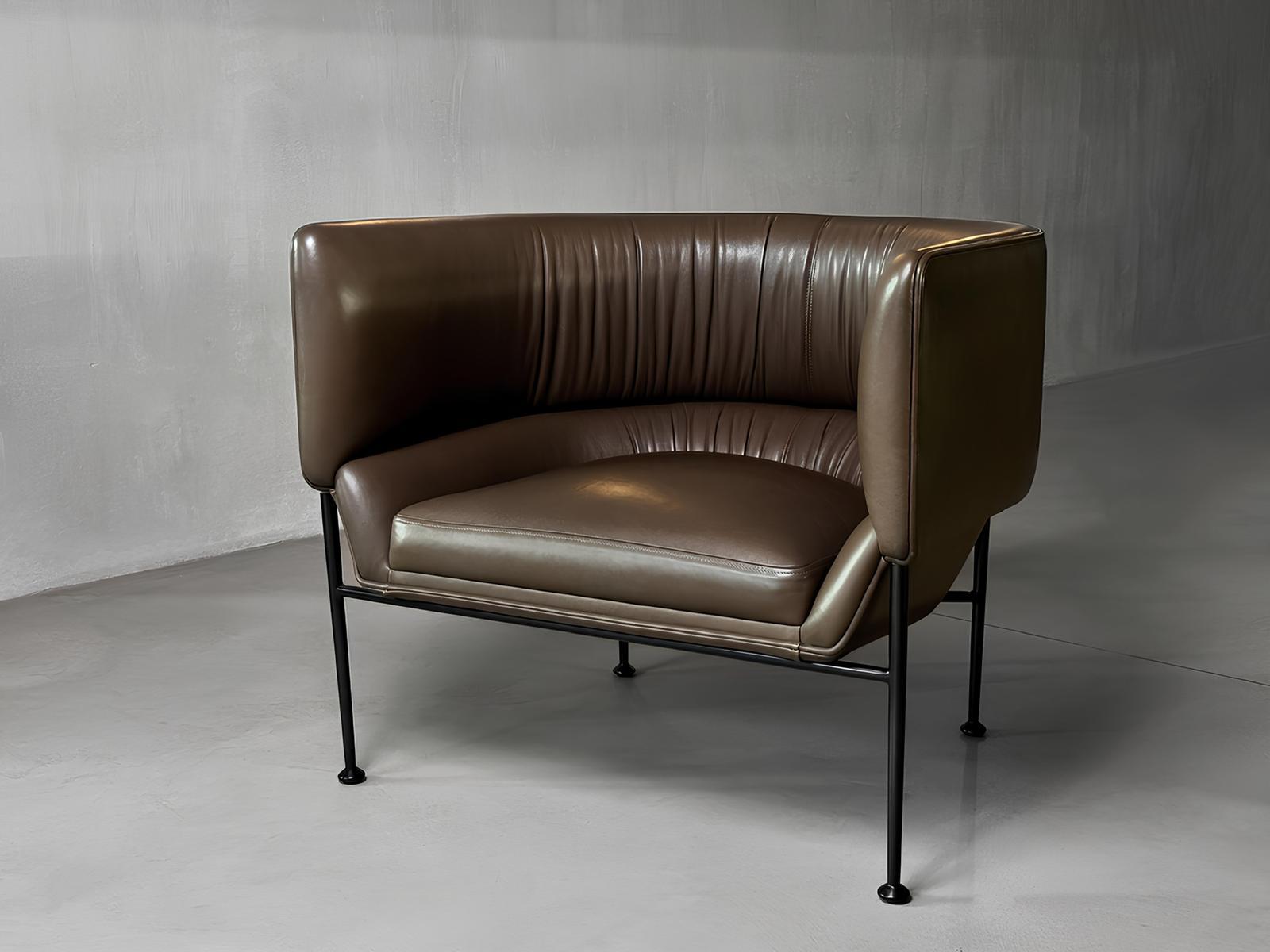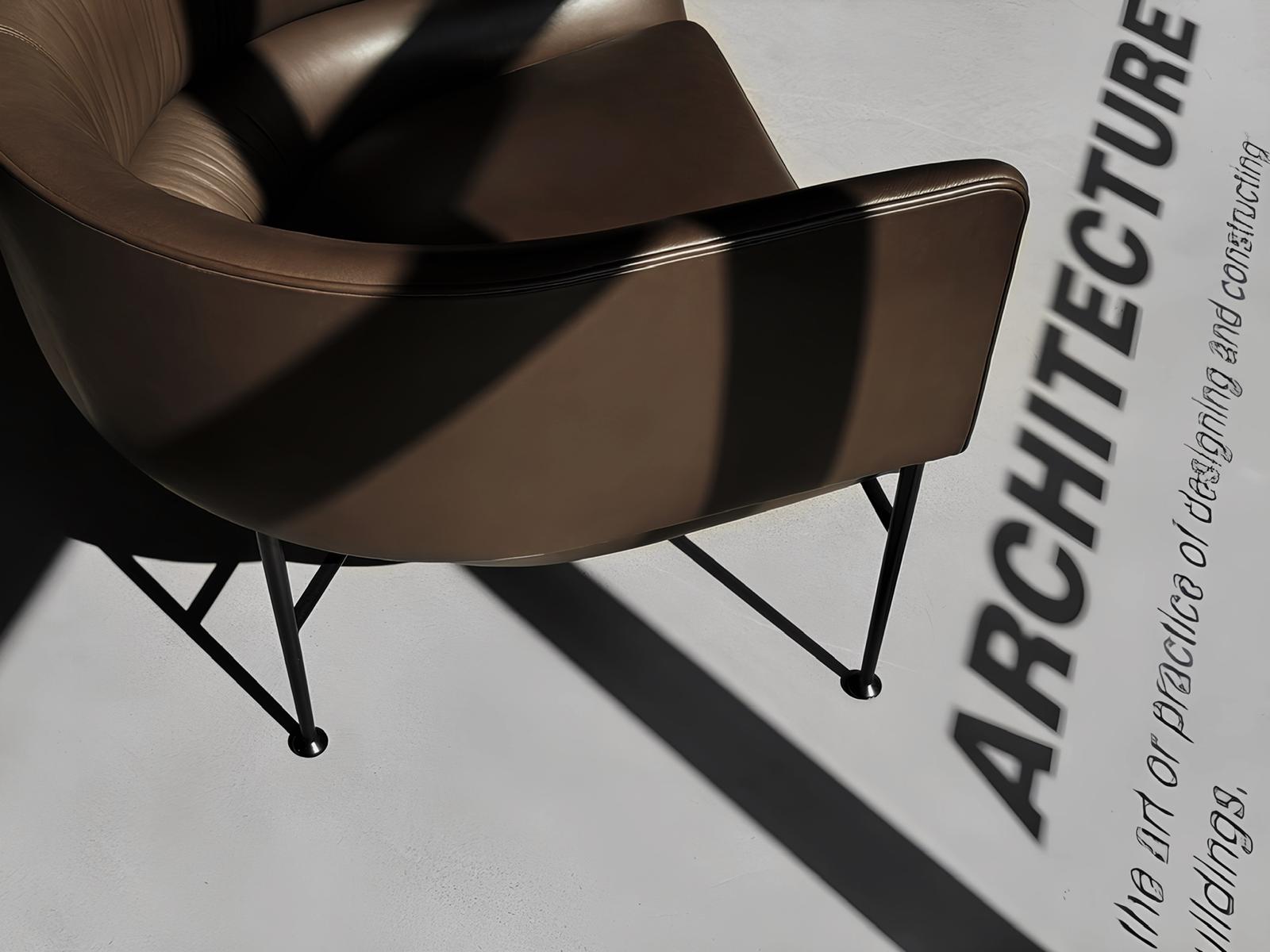 It doesn’t impose with form, yet it draws the eye. Collar Lounge is an armchair that doesn’t speak, it suggests. Its silhouette wraps around the body like a gentle gesture, creating a quiet boundary around the seated figure. The refined simplicity of the steel base contrasts with the softness of the upholstered interior, giving the impression of suspension, as if it hovers just above the ground. This is not merely a piece of furniture, but a space, subtly defined and consciously designed.